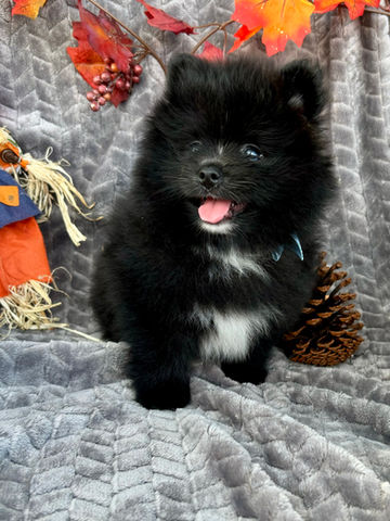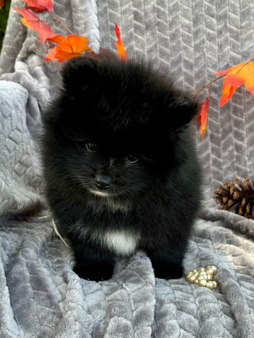 Absolutely Stunning Male Jet Black Sable Baby Doll Purebred Registered Pomeranian Puppy (The mom has hidden merle)