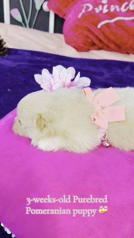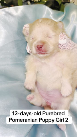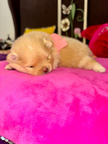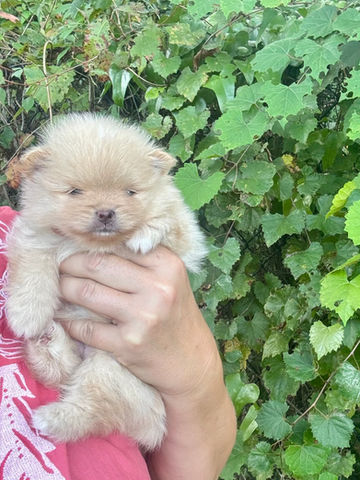 Beautiful Female Cream Parti Beaver Baby Doll Purebred Registered Pomeranian Puppy (The mom has hidden merle)