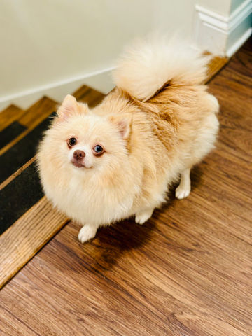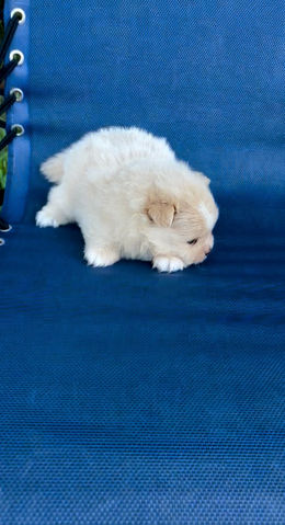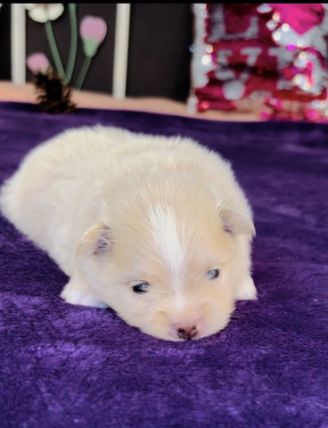Dam: AbbyGail - Beautiful Registered Purebred Cream Parti (Hidden Merle) Baby Doll Pomeranian