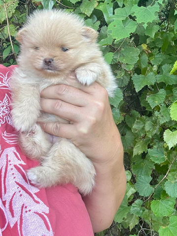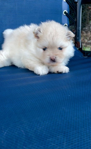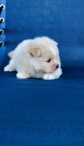 Stunning Male Cream Parti Beaver Baby Doll Purebred Registered Pomeranian Puppy (The mom has hidden merle)