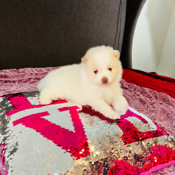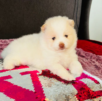 Gorgeous Male Striking White Beaver Baby Doll Purebred Registered Pomeranian Puppy.