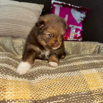 Gorgeous Female Chocolate Parti Beaver Baby Doll Purebred Registered Pomeranian Puppy.