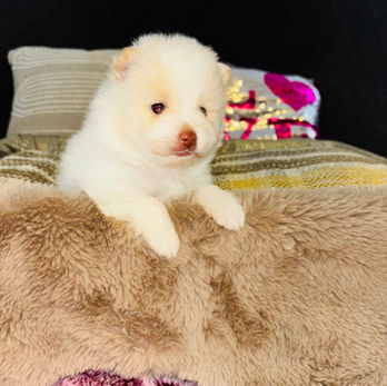 Dam: Skye - Beautiful Registered Purebred Baby Doll Cream Parti Pomeranian